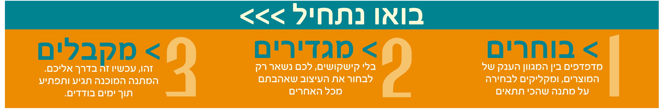 כאן מבלי להתבלבל, וללא הורדת תוכנה תוכלו לעוף עם הדמיון, לקבל השראה ולבחור את העיצוב למתנה המושלמת בשבילכם.